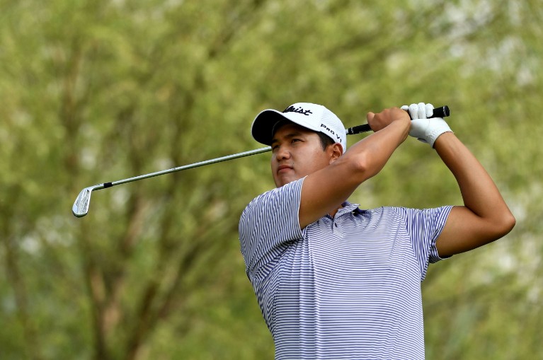 Playing in only his second Asian Tour tournament, the big-hitting 20-year-old averaged 322.5 yards en-route to a second straight five-under-par 65 as he leads the weather interrupted tournament on 10-under-par 130.